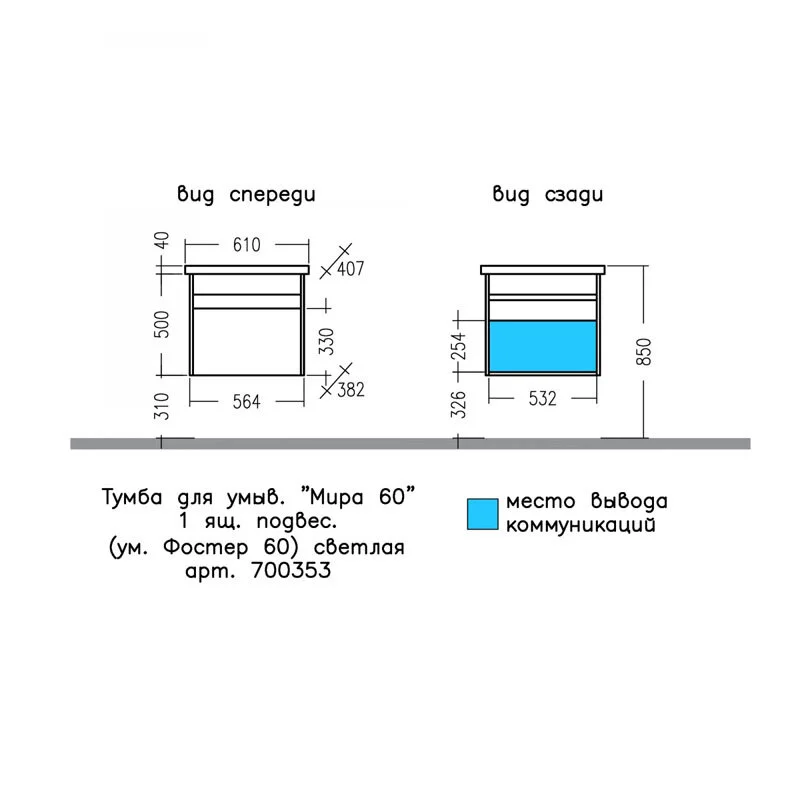 —Тумба под раковину СанТа Мира 700353 60х40 подвесная цвет белый