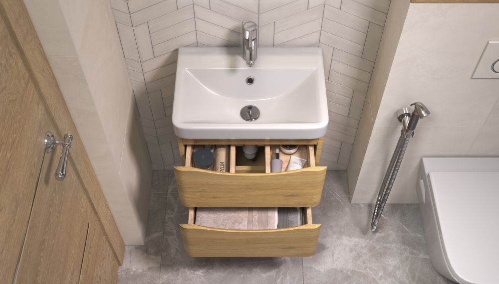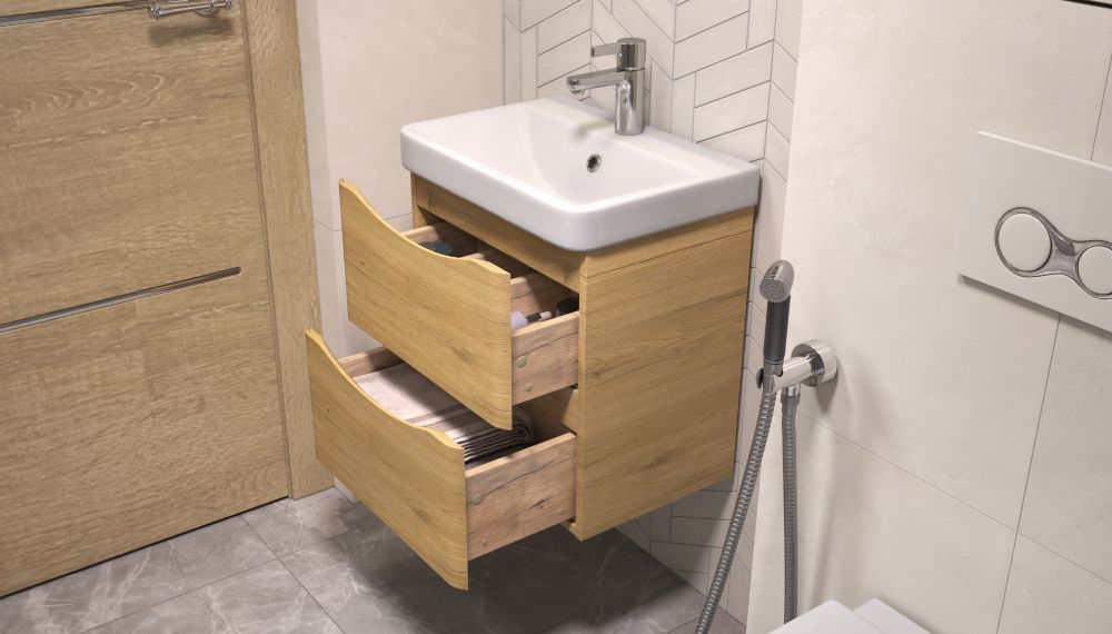 —Тумба под раковину Velvex CLAY 370 50х30 подвесная цвет бежевый