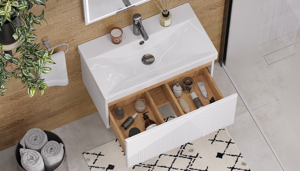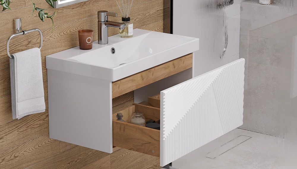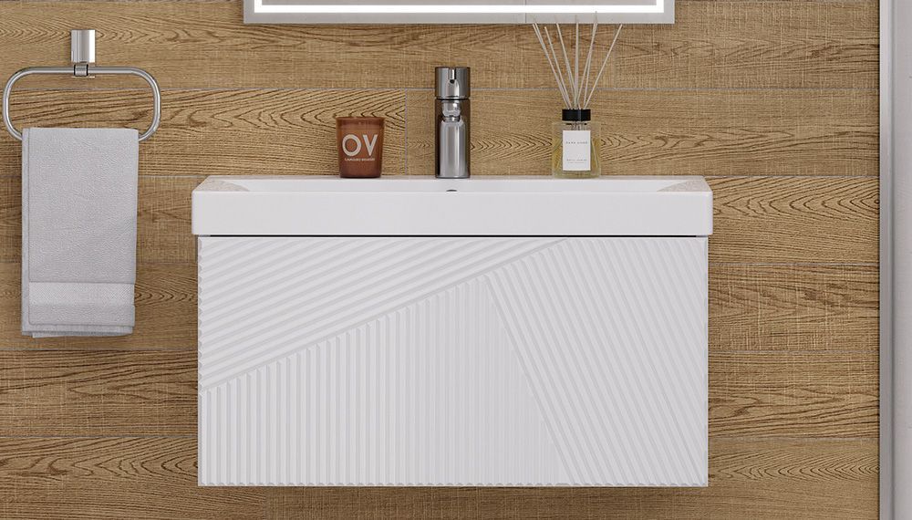 —Тумба под раковину Velvex EDGE tp.EDG.9696.70.1Y белый глянец 70х40 подвесная цвет серый