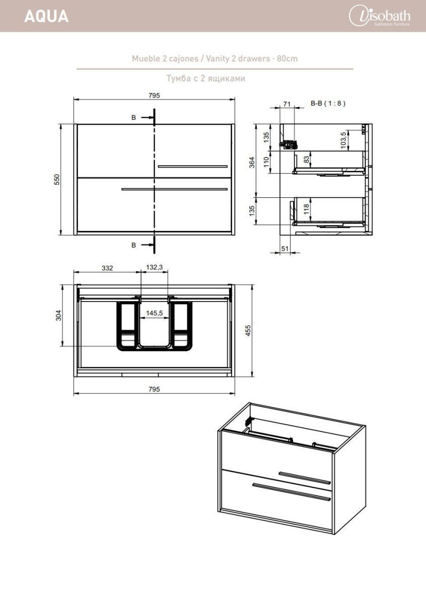 —Тумба под раковину Visobath Aqua 73563/73582 80х50 подвесная цвет бежевый