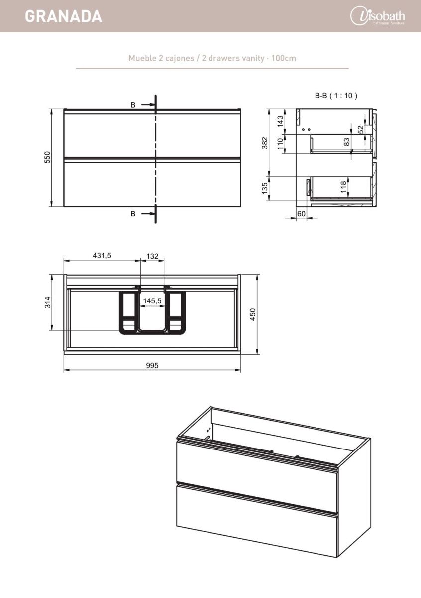—Тумба под раковину Visobath Granada 70456/87605 100х50 подвесная цвет бежевый