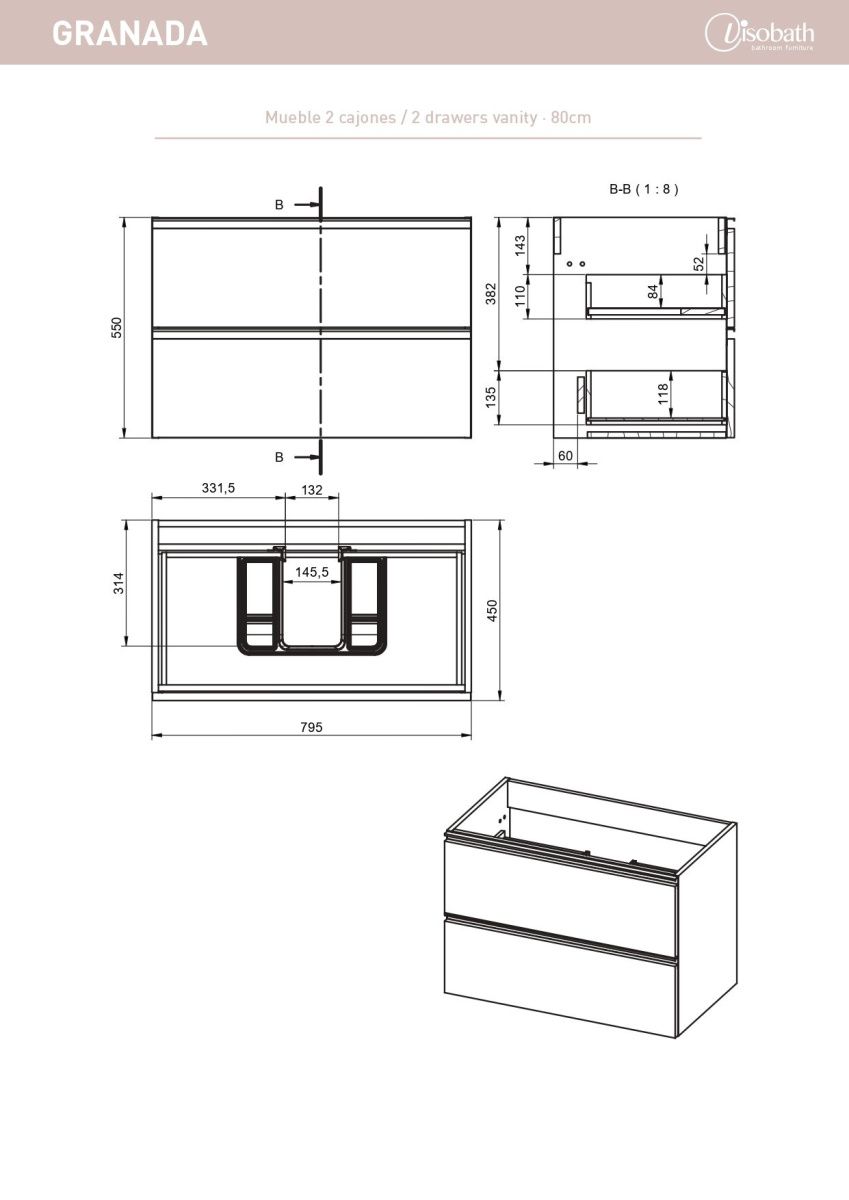 —Тумба под раковину Visobath Granada 87519/87602 80х50 подвесная цвет белый
