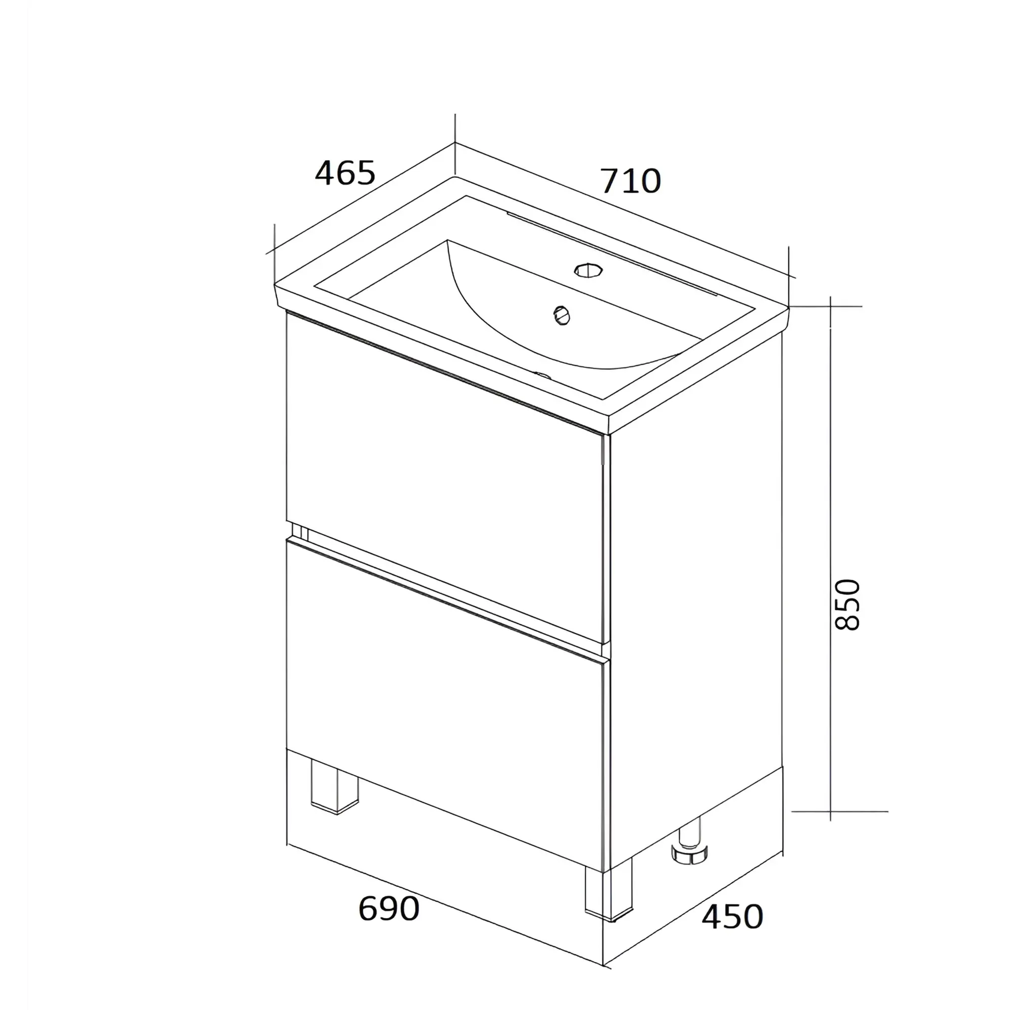 •Материал фасада – МДФ с глянцевой пленкой ПВХ, ящики – ЛДСП, покрытые влагостойким лаком для защиты от повышенной влажности в ванной комнате.