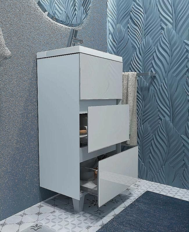 - корпус тумбы покрыт акриловой эмалью: гарант влагостойкости и долговечности;