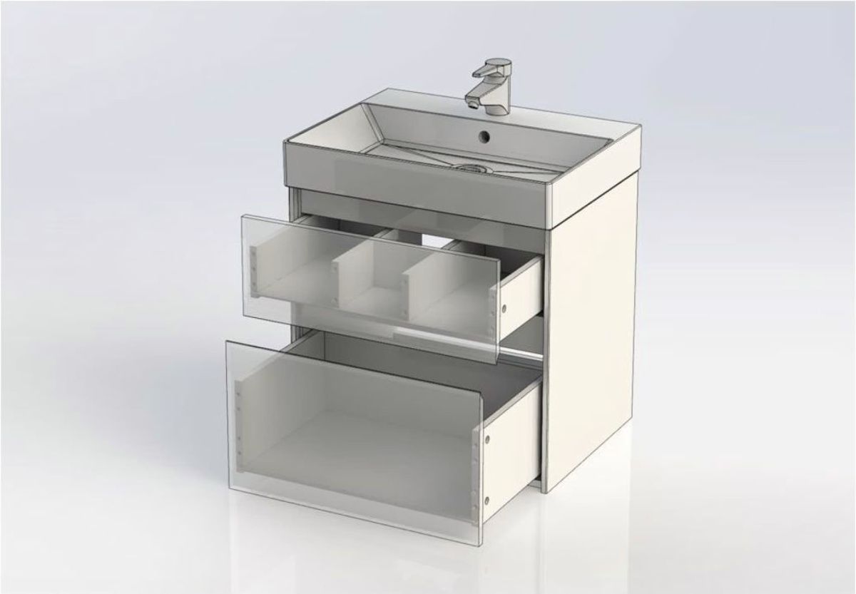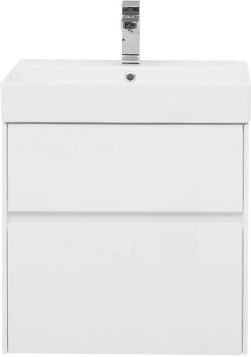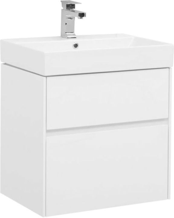 Тумба с раковиной Aquanet Бруклин 60 белого цвета предназначена для подвесной установки Изделие отвечает тенденциям минимализма Аскетизм четких линий и обтекаемых форм в ней доведен до совершенства В модели нет никаких выделяющихся деталей, и даже ручки интегрированные, когда открывание происходит за счет выступающей детали верхней или нижней части фасада, которая срезана под углом, в результате чего образуется выемка, служащая ручкой В тумбе ручка устроена таким образом у верхнего ящика в нижней части фасада, а у нижнего – в верхней Такое простое решение добавляет изысканности внешнему виду изделия Раковина из керамики с тонкими изящными бортиками идет размер в размер с тумбой, ширина которой 60 см, в результате чего все изделие выглядит как единое целое Корпус изделия выполнен из выкрашенного белой краской влагостойкого ЛДСП, фасады – из МДФ На контрасте с белизной внешних деталей стильно смотрится корпус выдвижных ящиков, выполненный в цвете «дуб сонома» Нижний ящик тумбы имеет большую зону хранения, верхний разделен на несколько отделений, которые помогут грамотно разложить все необходимое по своим местам