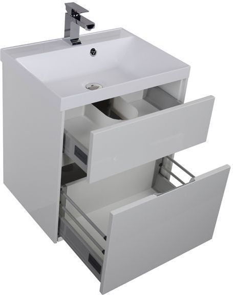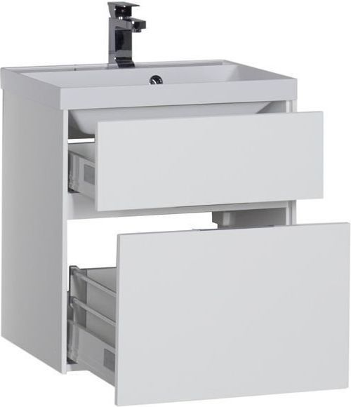 Тумба с раковиной Акванет Латина — новое предложение для тех, кто решил создать ванную комнату в стиле «модерн». Современные лаконичные формы такой мебели позволяют оснащать даже небольшие по площади ванные комнаты весьма рационально. Тумба сравнительно компактна, в то же время вместительные отделения двух ящиков тумбы сокроют в себе белье и полотенца. Среди достоинств тумбы Латина — хромированные ручки выдвижных ящиков с доводчиками плавного закрывания и глубокая прямоугольная раковина из литьевого мрамора, что очень актуально для современных интерьеров. Белое глянцевое покрытие «Латины» соответствует представлениям о чистоте и здоровье и гармонирует с белизной ванны, кабины или душевого уголка в ванной комнате. <