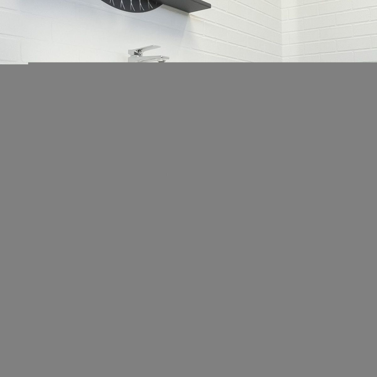 Подвесная тумба с одним большим выдвижным ящиком. Направляющие ящиков оборудованы системой плавного закрывания. Лицевая фурнитура на фасад отсутствует, для открытия ящика нужно потянуть верхний край фасада, на котором сделан вырез под естественный хват. Тумба подготовлена для подключению коммуникаций снизу и сзади.