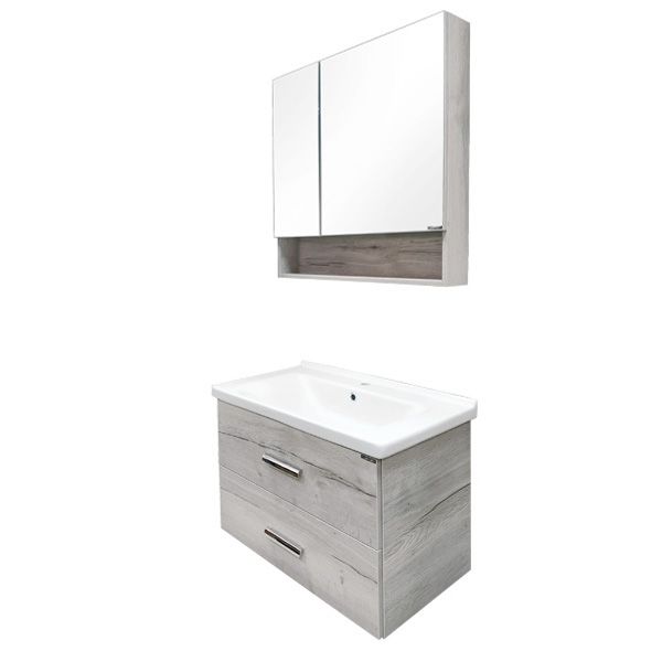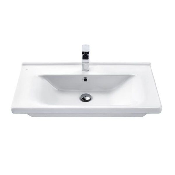 Тумба укомплектована прямоугольной раковиной завода Сантек Миранда шириной 80 см.