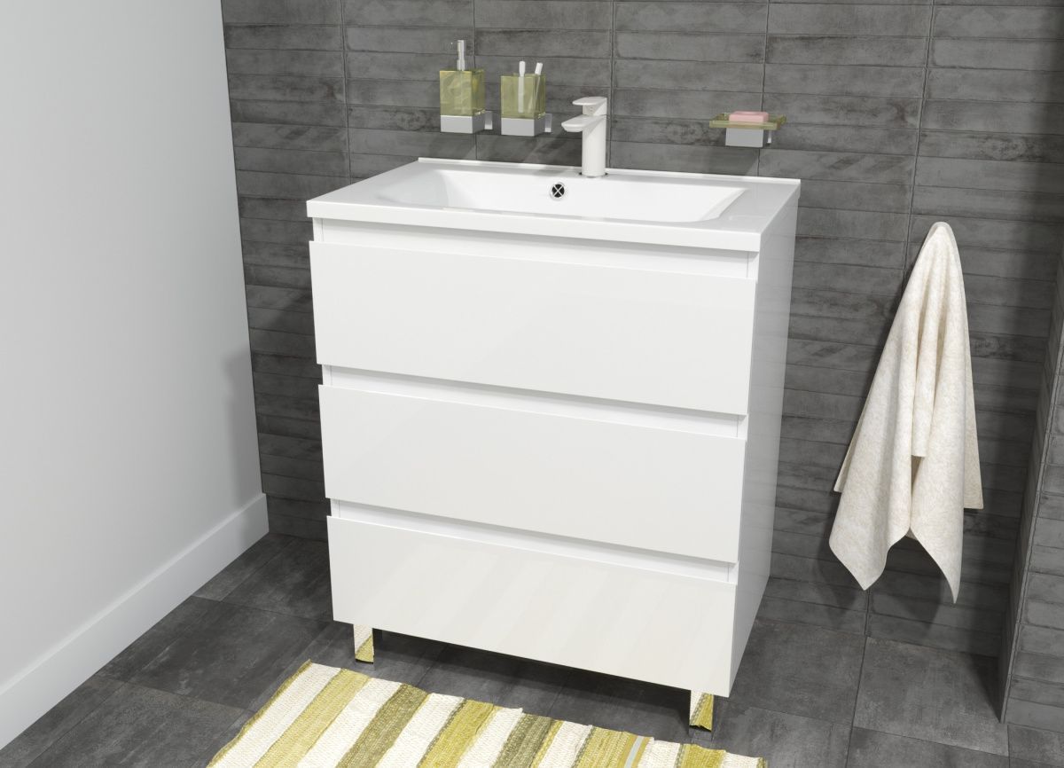 Современный дизайн серии Bali создан для ценителей минимализма. Четкие геометрические формы, бесшумное закрывание ящиков, вместительная тумба с верхним и нижним ящиками создает дополнительное пространство, где будут надежно скрыты от влаги банные принадлежности.
