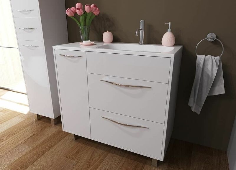 Коллекция Barcelona выполнена в стиле модерн. Плавные линии и формы подчеркивают элегантность комплекта, а разнообразие комплектации позволяет использовать мебель в качестве маркера вашего собственного стиля. За счет раковины с крылом коллекция Barcelona более вместительная и удобная. В напольной тумбе располагаются 2 ящика и дополнительное пространство с распашной дверцей. Два ящика предполагают размещение бытовых принадлежностей, а в секции с дверцей можно разместить бельевую корзину.