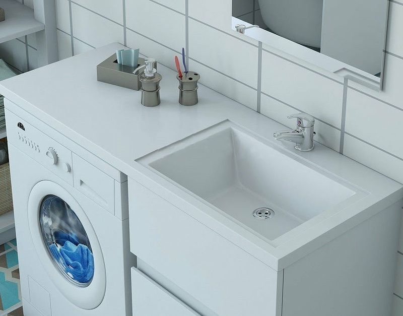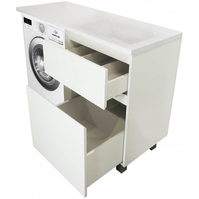 Коллекция мебели для ванной комнаты Dallas Luxe покоряет своей удивительной простой и функциональностью. Стильная лаконичная тумба, укомплектована раковиной из литьевого мрамора с удобной чашей. Стиральная машина устанавливается под столешницей, за счет чего экономит место в ванной комнате. В тумбе имеются два ящика. Нижний ящик тумбы – широкий и вместительный – предназначен для крупных предметов, а в верхнем имеется специальная организация пространства, позволяющая хранить мелкие вещи.