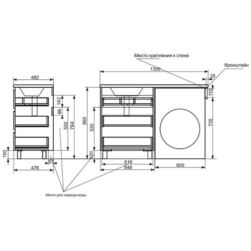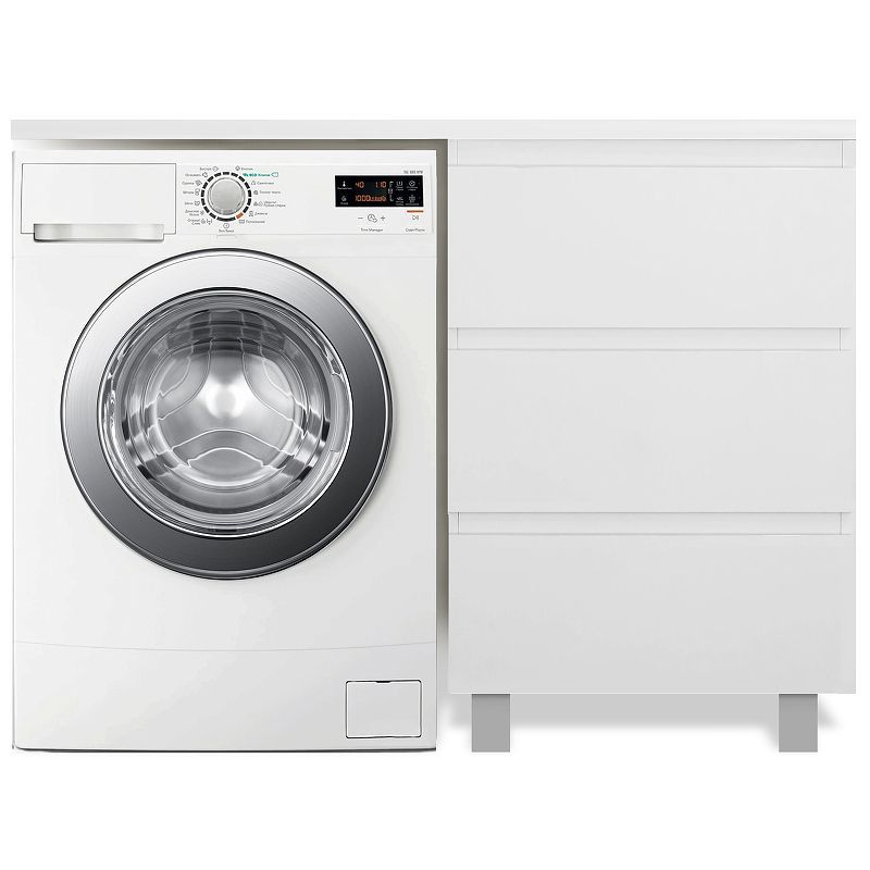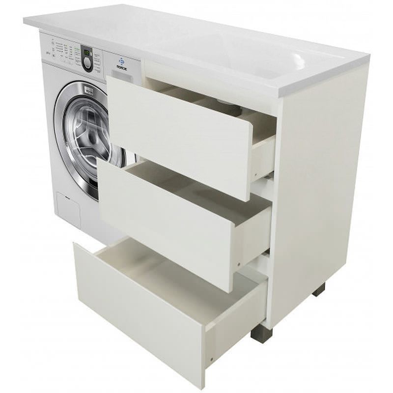 Приоритетом в выборе тумбы с раковиной является площадь ванной комнаты. Функциональная тумба с тремя ящиками решит вопрос для большинства покупателей. Тумба укомплектована раковиной из литьевого мрамора с удобной чашей, стиральная машина устанавливается под столешницей.  Три ящика позволят распределить как крупные, так и мелкие вещи.