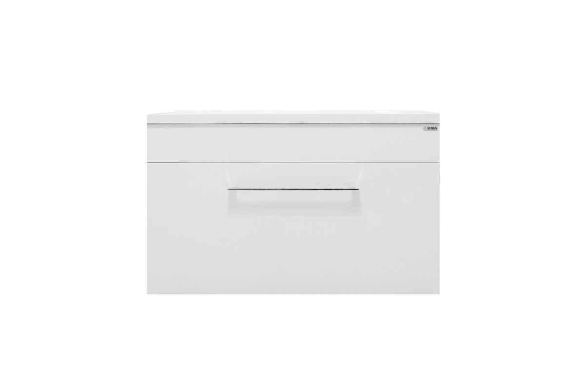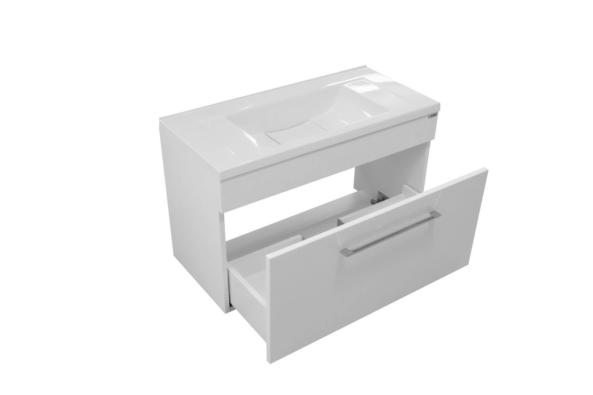 Коллекция мебели для ванной комнаты ELIN выполнена в современном стиле. Тумба укомплектована раковиной из литьевого мрамора с удобной чашей, плавными изгибами и необычным вкладышем. В тумбе имеется один широкий и вместительный ящик, который можно использоваться как для крупных, так и для мелких предметов.