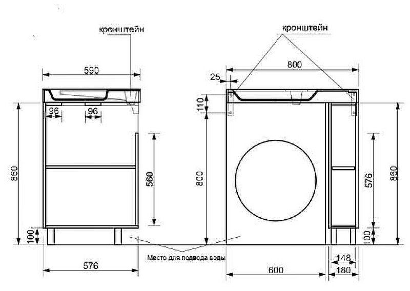 Раковина комплектуется тумбами на выбор - модуль с выдвижным ящиком (бутылочницей), либо модуль с полкой и распашной дверцей. На фасаде распложена врезная ручка, цвет «хром».