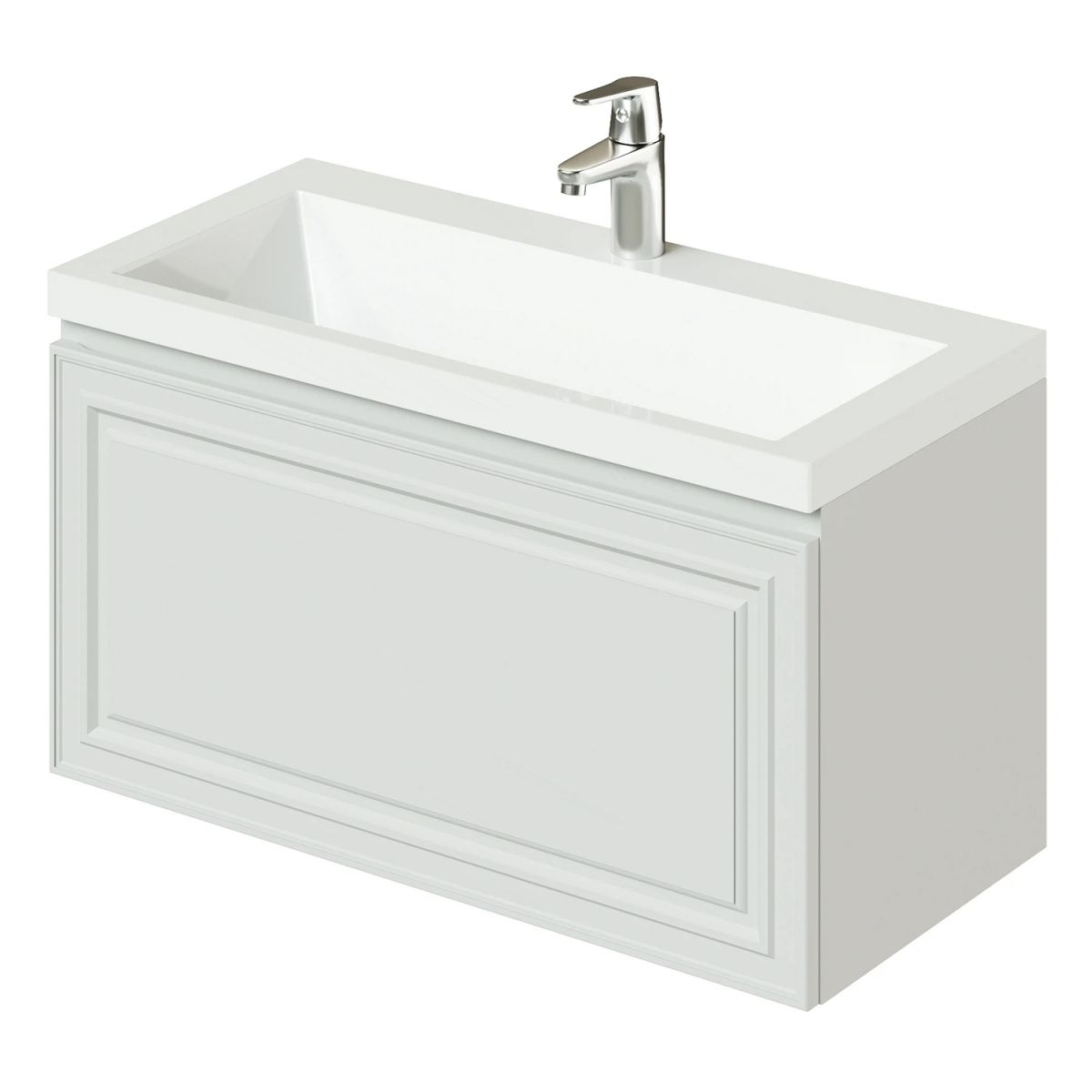 Подвесная тумба с раковиной из коллекции Verona станет настоящим украшением ванной комнаты в современном, скандинавском стиле. Изделие изготовлено из прочного МДФ, поэтому выдерживает высокие эксплуатационные нагрузки. Корпус и фасады покрыты матовой пленкой , что обеспечивает дополнительную защиту мебели от влаги и перепадов температуры. Качественная фурнитура с доводчиками обеспечивает легкое открывание и плавное закрывание ящиков. Подвесной способ установки дает возможность не только визуально увеличить пространство, но и обеспечивает быстрый и удобный доступ для уборки.