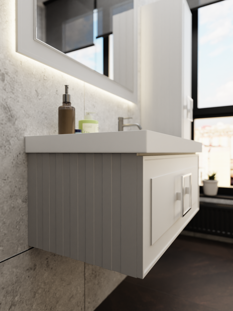 С мебелью коллекции Cubo решить задачу будет проще. Матовые фасады подвесных тумб и столешницы в различных цветовых гаммах помогут даже самому взыскательному покупателю создать индивидуальный интерьер. Изящные и утончённые фрезерованные фасады и боковины тумб в сочетании неповторимым цветом молочно-белая станут украшением любой ванной комнаты.