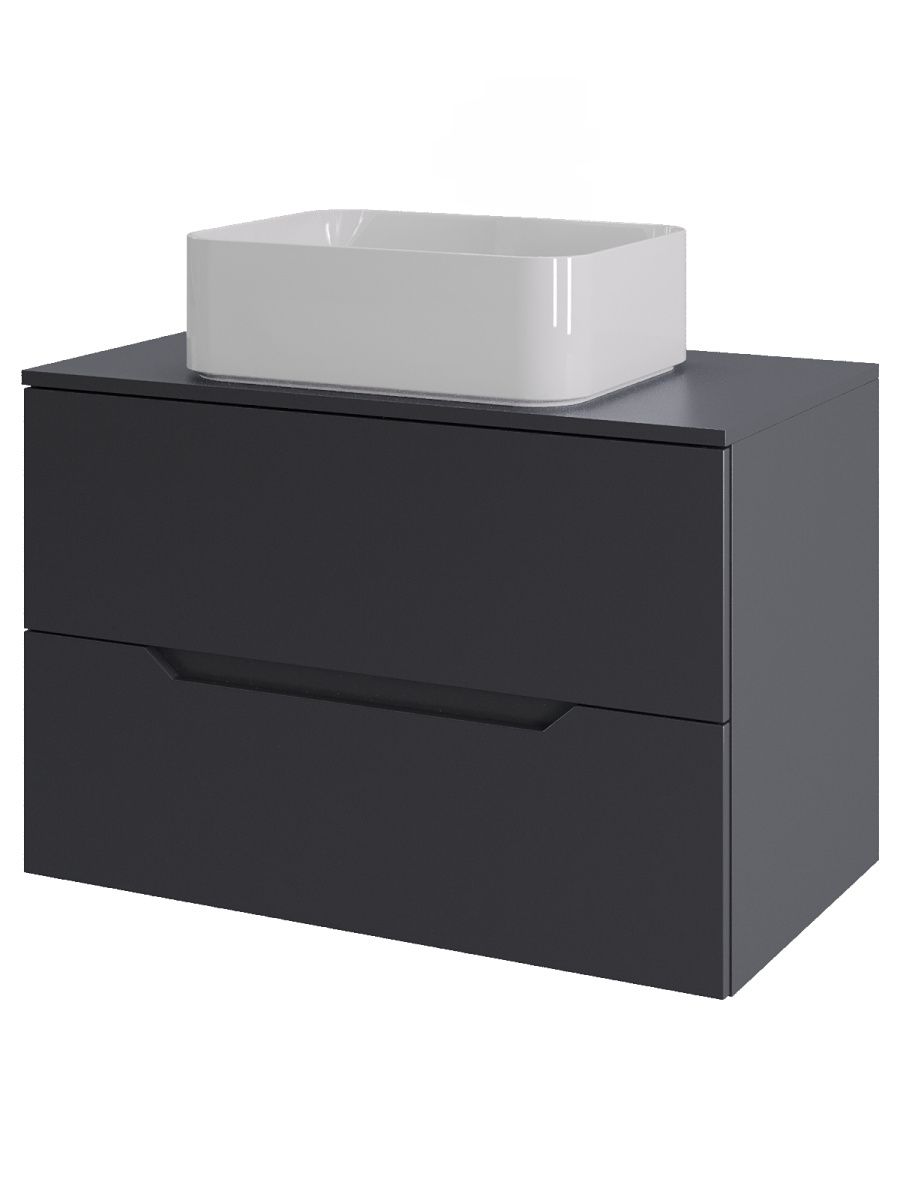Тумба подвесная с накладной раковиной Orange Line отличается современным дизайном. Изготовлена из МДФ высокой плотности. Мебель покрыта пленкой ПВХ  с технологией Soft Touch — ламинация класса премиум, с повышенными тактильными свойствами. Пленка обеспечивает дополнительную защиту мебели от влаги и перепадов температуры. На ящики установлены комплекты скрытых направляющих Hettich, обеспечивающие полное выдвижение и имеющие встроенную систему плавного и бесшумного закрывания. Исполнение - матовое. Материал раковины - фарфор. Отверстия в столешнице под раковину и смеситель монтируются самостоятельно. Донный клапан приобретается отдельно.