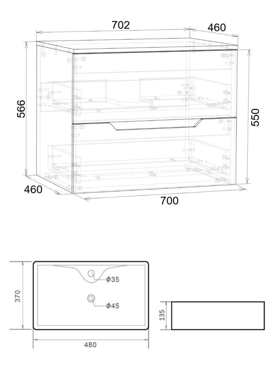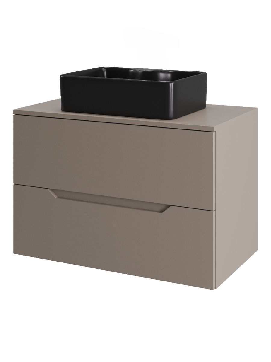 Тумба подвесная с накладной раковиной Orange Line отличается современным дизайном. Изготовлена из МДФ высокой плотности. Мебель покрыта пленкой ПВХ  с технологией Soft Touch — ламинация класса премиум, с повышенными тактильными свойствами. Пленка обеспечивает дополнительную защиту мебели от влаги и перепадов температуры. На ящики установлены комплекты скрытых направляющих Hettich, обеспечивающие полное выдвижение и имеющие встроенную систему плавного и бесшумного закрывания. Исполнение - матовое. Материал раковины - фарфор. Отверстие в столешнице под раковину монтируется самостоятельно. Донный клапан приобретается отдельно.
