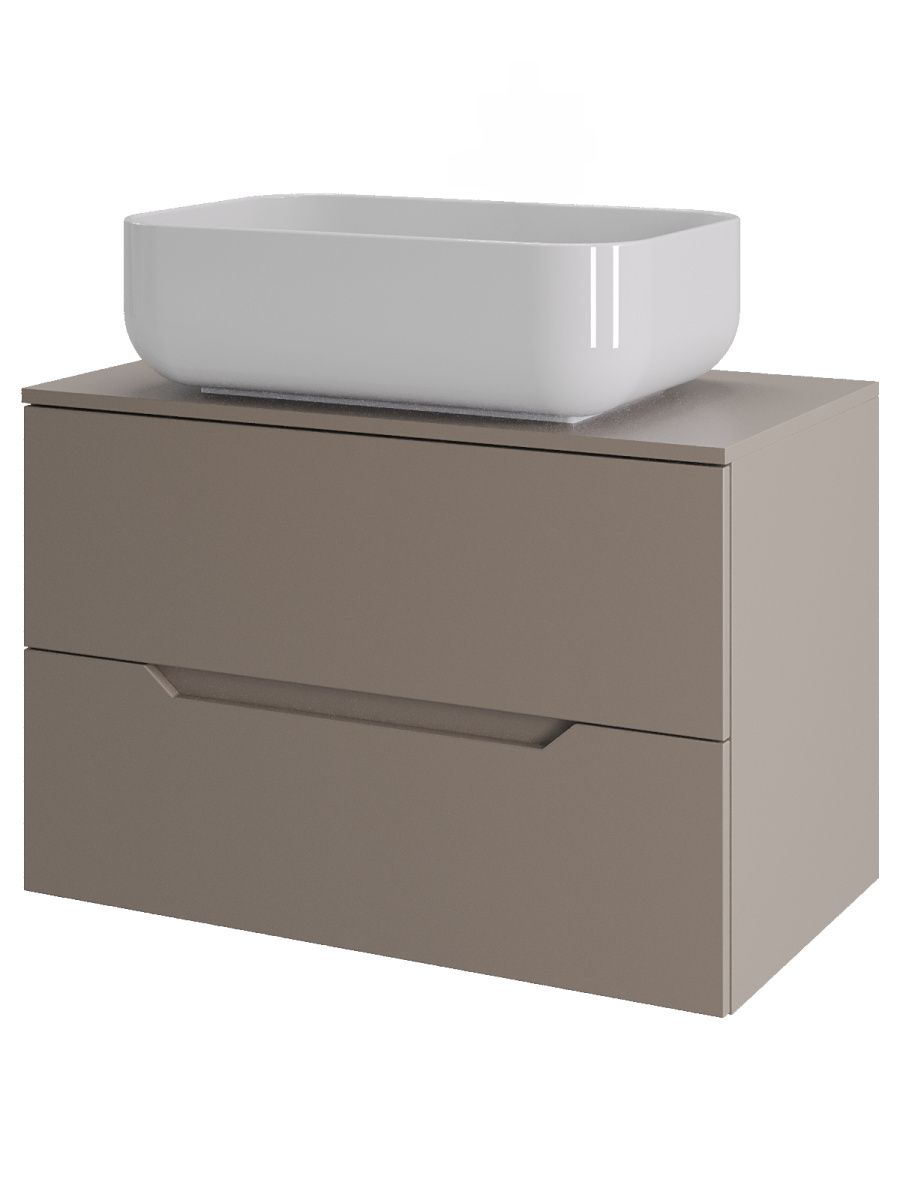 Тумба подвесная с накладной раковиной Orange Line отличается современным дизайном. Изготовлена из МДФ высокой плотности. Мебель покрыта пленкой ПВХ  с технологией Soft Touch — ламинация класса премиум, с повышенными тактильными свойствами. Пленка обеспечивает дополнительную защиту мебели от влаги и перепадов температуры. На ящики установлены комплекты скрытых направляющих Hettich, обеспечивающие полное выдвижение и имеющие встроенную систему плавного и бесшумного закрывания. Исполнение - матовое. Материал раковины - фарфор. Отверстия в столешнице под раковину и смеситель монтируются самостоятельно. Донный клапан приобретается отдельно.