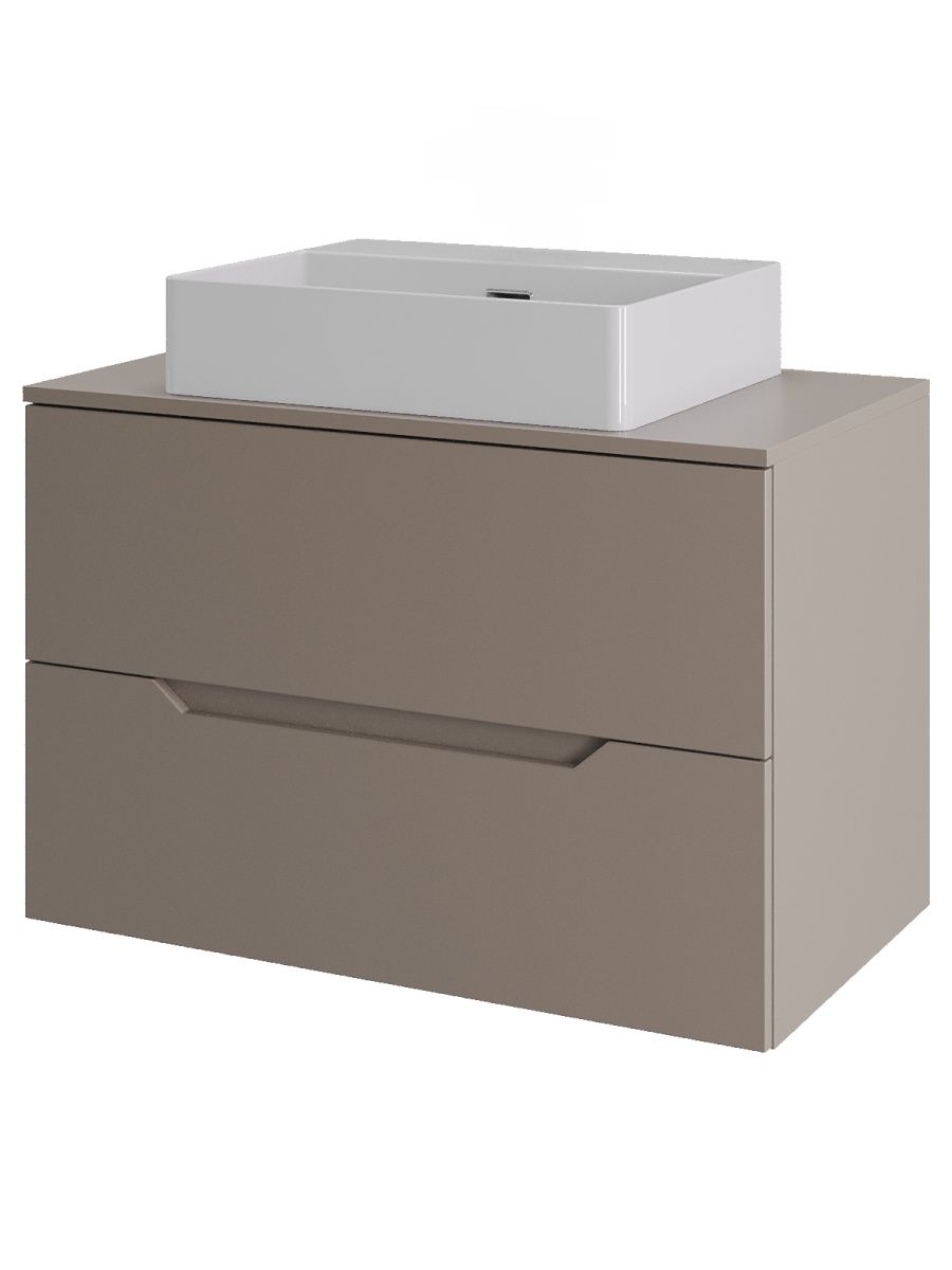 Тумба подвесная с накладной раковиной Orange Line отличается современным дизайном. Изготовлена из МДФ высокой плотности. Мебель покрыта пленкой ПВХ  с технологией Soft Touch — ламинация класса премиум, с повышенными тактильными свойствами. Пленка обеспечивает дополнительную защиту мебели от влаги и перепадов температуры. На ящики установлены комплекты скрытых направляющих Hettich, обеспечивающие полное выдвижение и имеющие встроенную систему плавного и бесшумного закрывания. Исполнение - матовое. Материал раковины - фарфор. Отверстие в столешнице под раковину монтируется самостоятельно. Донный клапан приобретается отдельно.