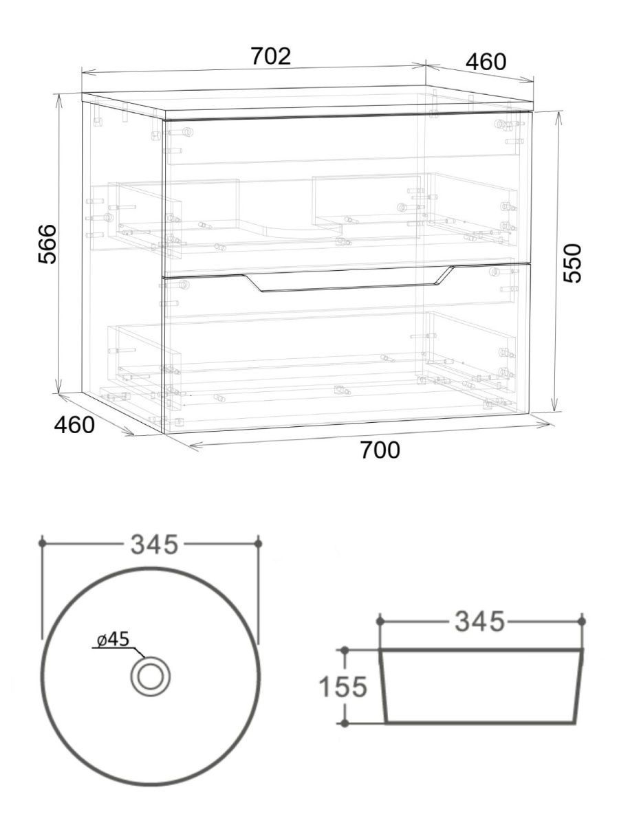 Тумба подвесная с накладной раковиной Orange Line отличается современным дизайном. Изготовлена из МДФ высокой плотности. Мебель покрыта пленкой ПВХ  с технологией Soft Touch — ламинация класса премиум, с повышенными тактильными свойствами. Пленка обеспечивает дополнительную защиту мебели от влаги и перепадов температуры. На ящики установлены комплекты скрытых направляющих Hettich, обеспечивающие полное выдвижение и имеющие встроенную систему плавного и бесшумного закрывания. Исполнение - матовое. Материал раковины - фарфор. Отверстия в столешнице под раковину и смеситель монтируются самостоятельно. Донный клапан приобретается отдельно.