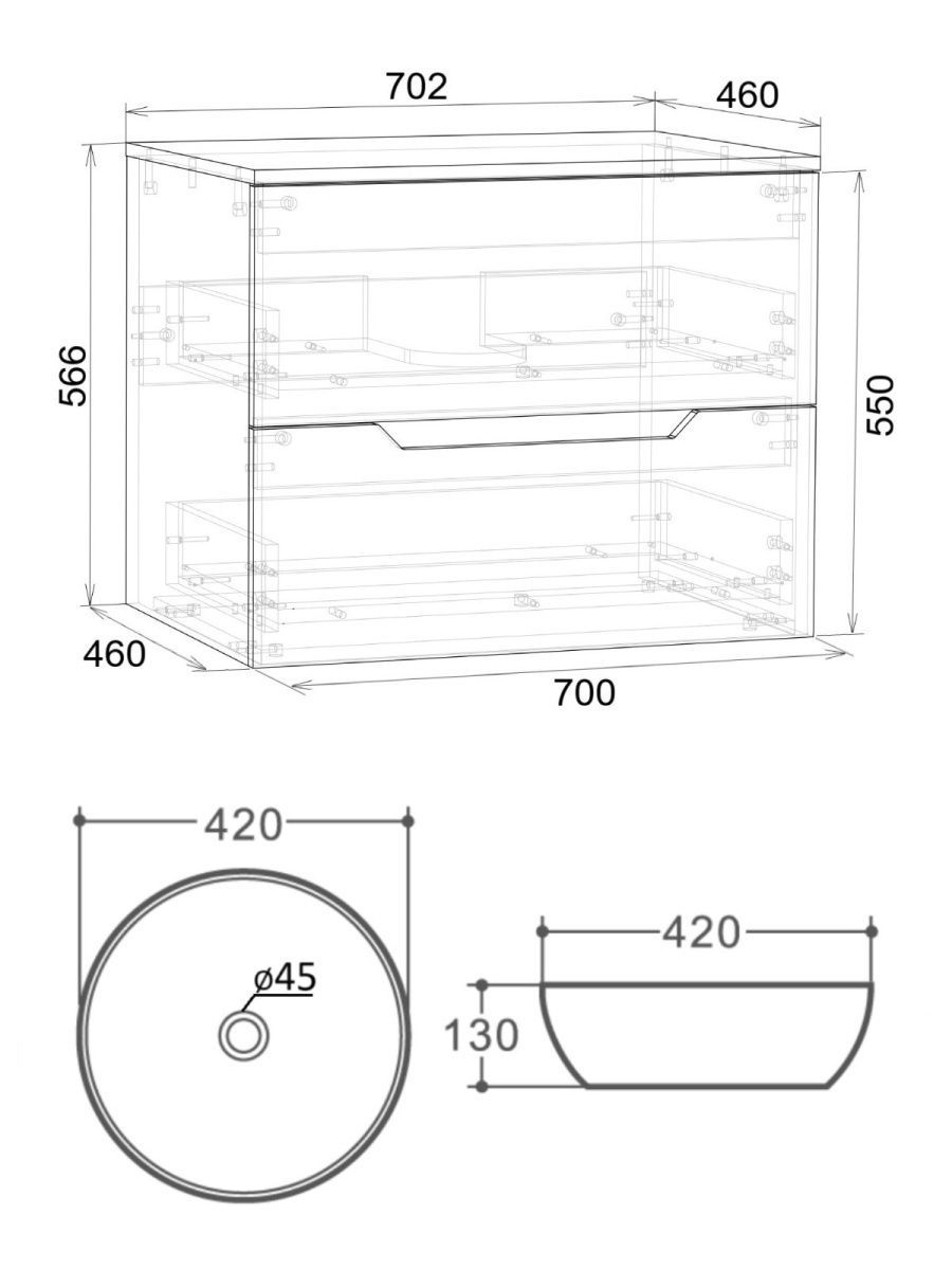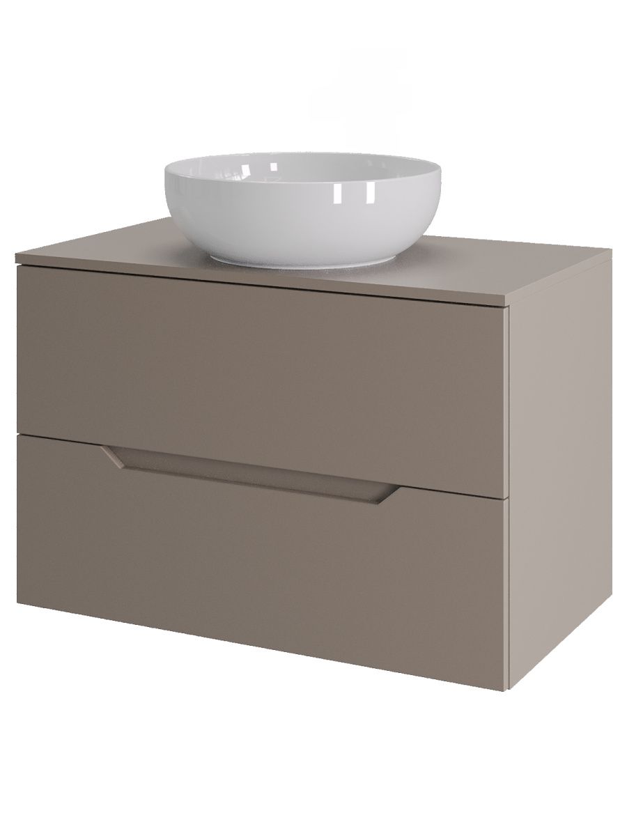 Тумба подвесная с накладной раковиной Orange Line отличается современным дизайном. Изготовлена из МДФ высокой плотности. Мебель покрыта пленкой ПВХ  с технологией Soft Touch — ламинация класса премиум, с повышенными тактильными свойствами. Пленка обеспечивает дополнительную защиту мебели от влаги и перепадов температуры. На ящики установлены комплекты скрытых направляющих Hettich, обеспечивающие полное выдвижение и имеющие встроенную систему плавного и бесшумного закрывания. Исполнение - матовое. Материал раковины - фарфор. Отверстия в столешнице под раковину и смеситель монтируются самостоятельно. Донный клапан приобретается отдельно.