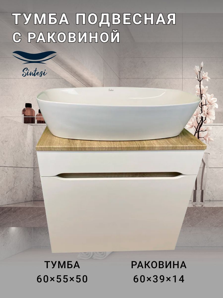 Тумба Style-60-W7018 - современное и оригинальное решение для оснащения ванной комнаты. Подвесная тумба Style-60 изготовлена из экологически чистых и удивительно долговечных материалов, которое не уступают ведущим немецким технологиям и обеспечивают насыщенный цвет в течение всего срока службы (от 10 лет). Размеры тумбы: ширина 60 см, высота 50 см, глубина 55 см. Столешница: МДФ.