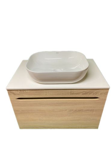 Подвесная конструкция позволяет сэкономить пространство и облегчает уборку, что особенно актуально для небольших ванных. Раковина встроена в столешницу, обеспечивая гармоничное сочетание функциональности и эстетики. Столешница для раковины изготовлена из высококачественного материала, что гарантирует долговечность и простоту в уходе.