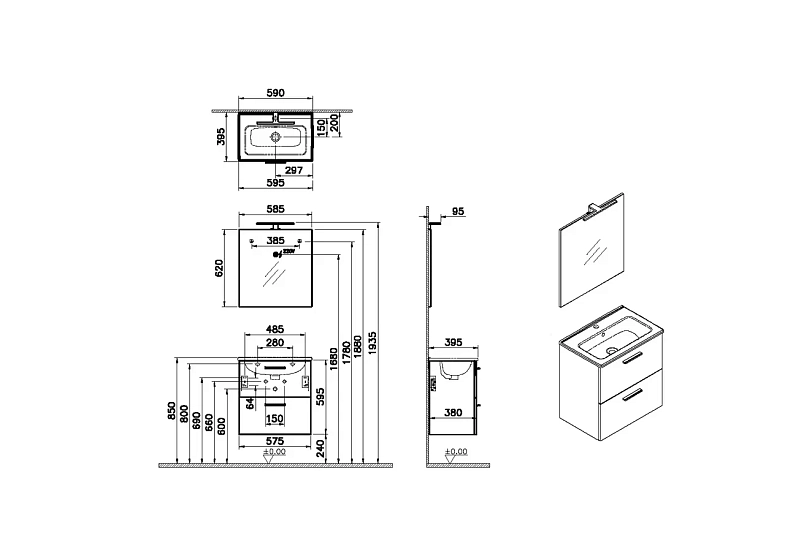 Благодаря небольшой глубине мебель станет оптимальным выбором для компактных ванных комнат и гостевых санузлов.