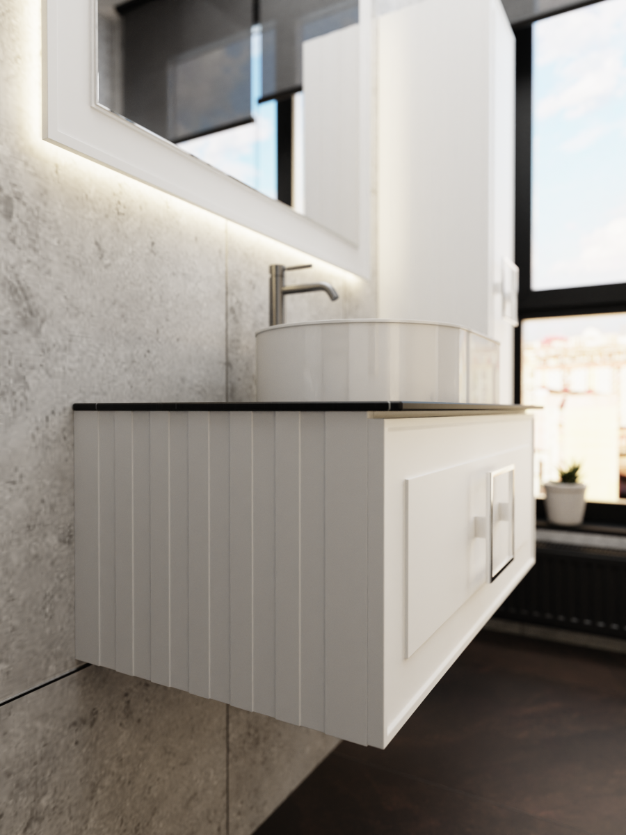 С мебелью коллекции Cubo решить задачу будет проще. Матовые фасады подвесных тумб и столешницы в различных цветовых гаммах помогут даже самому взыскательному покупателю создать индивидуальный интерьер. Изящные и утончённые фрезерованные фасады и боковины тумб в сочетании неповторимым цветом молочно-белая станут украшением любой ванной комнаты.