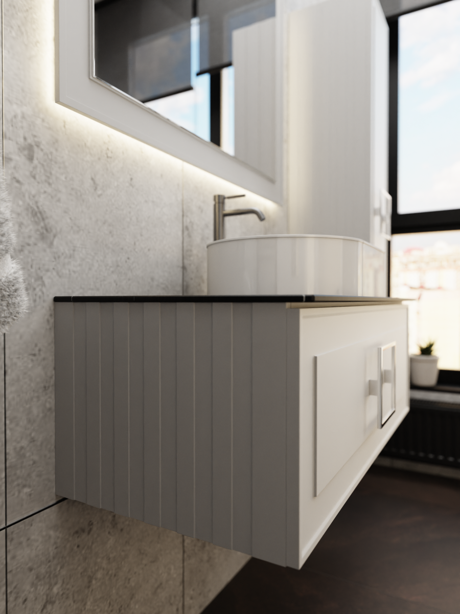 С мебелью коллекции Cubo решить задачу будет проще. Матовые фасады подвесных тумб и столешницы в различных цветовых гаммах помогут даже самому взыскательному покупателю создать индивидуальный интерьер. Изящные и утончённые фрезерованные фасады и боковины тумб в сочетании неповторимым цветом молочно-белая станут украшением любой ванной комнаты.