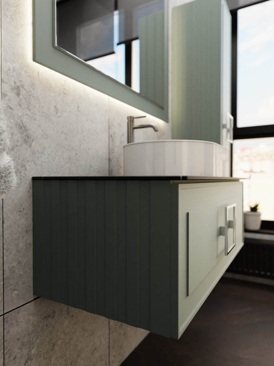 С мебелью коллекции Cubo решить задачу будет проще. Матовые фасады подвесных тумб и столешницы в различных цветовых гаммах помогут даже самому взыскательному покупателю создать индивидуальный интерьер. Изящные и утончённые фрезерованные фасады и боковины тумб в сочетании неповторимым цветом молочно-белая станут украшением любой ванной комнаты.