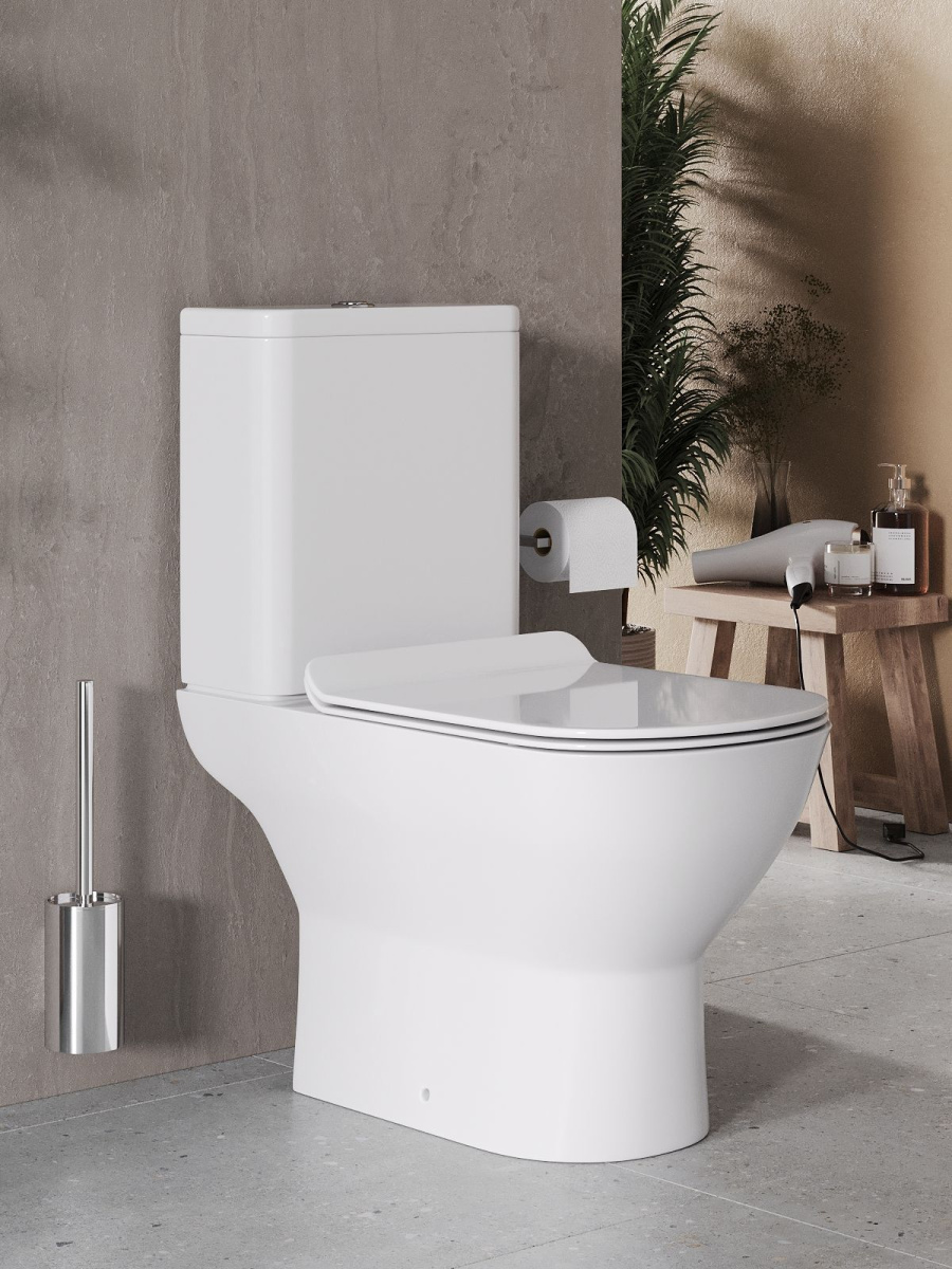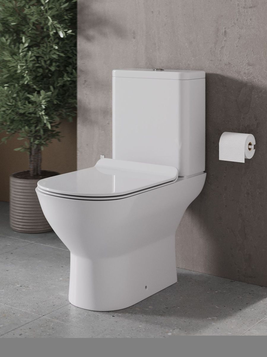 —Унитаз напольный с бачком Agger AT03000 белый с сиденьем микролифт безободковый смыв торнадо