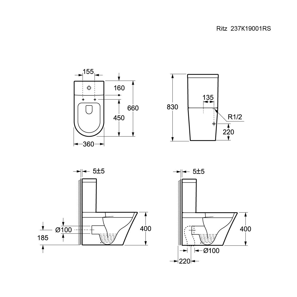 —Унитаз напольный с бачком Ambassador Ritz 237K19001RS белый с сиденьем безободковый каскадный смыв