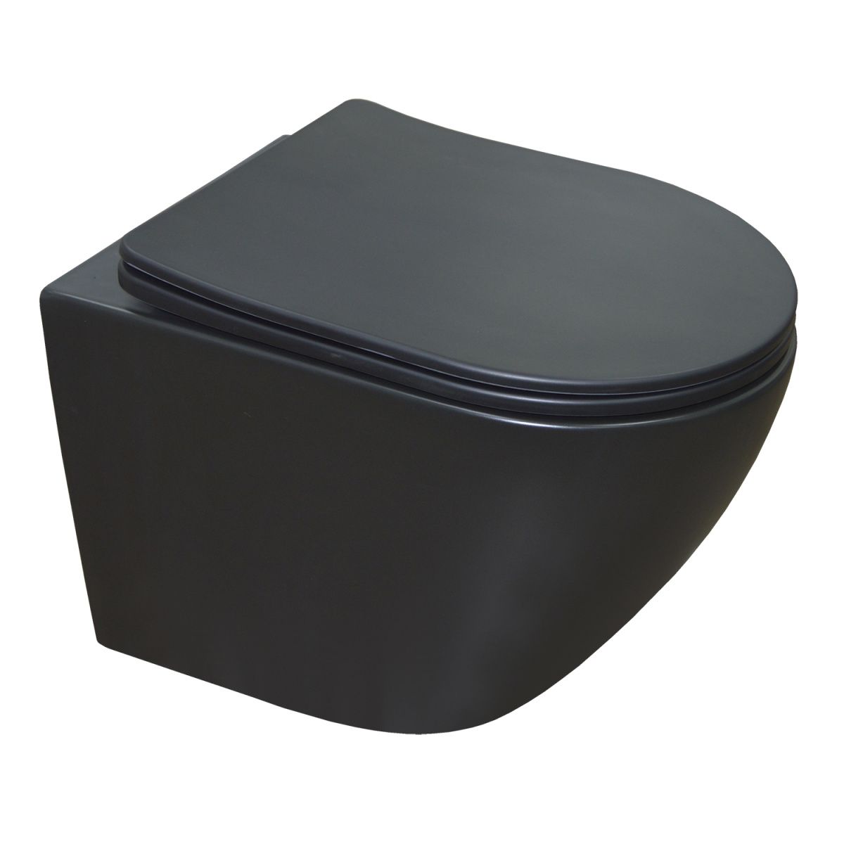 —Унитаз подвесной Azario Gloria AZ-2003MB черный с сиденьем микролифт безободковый каскадный смыв