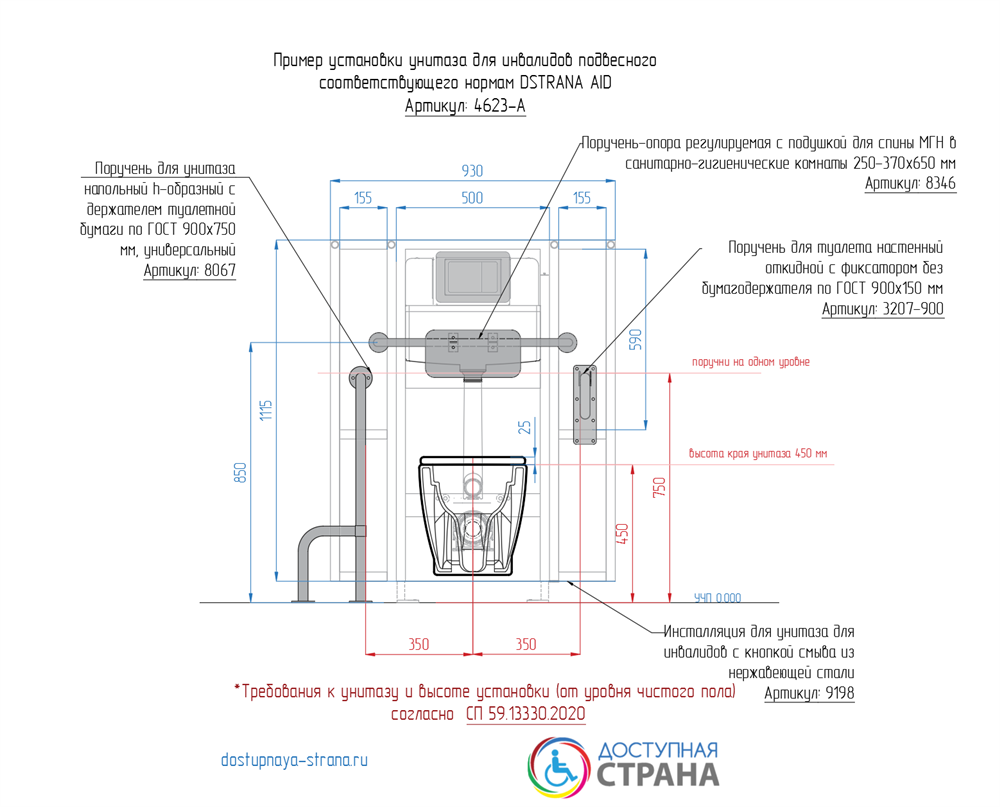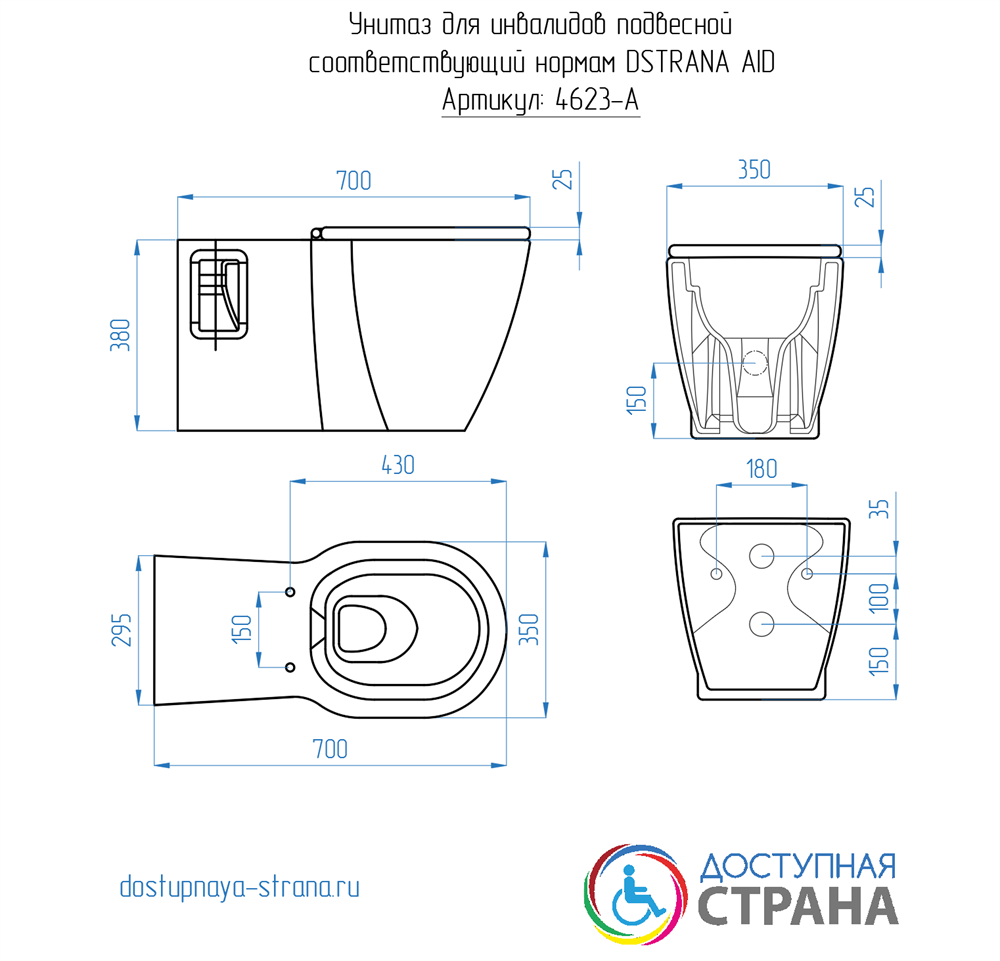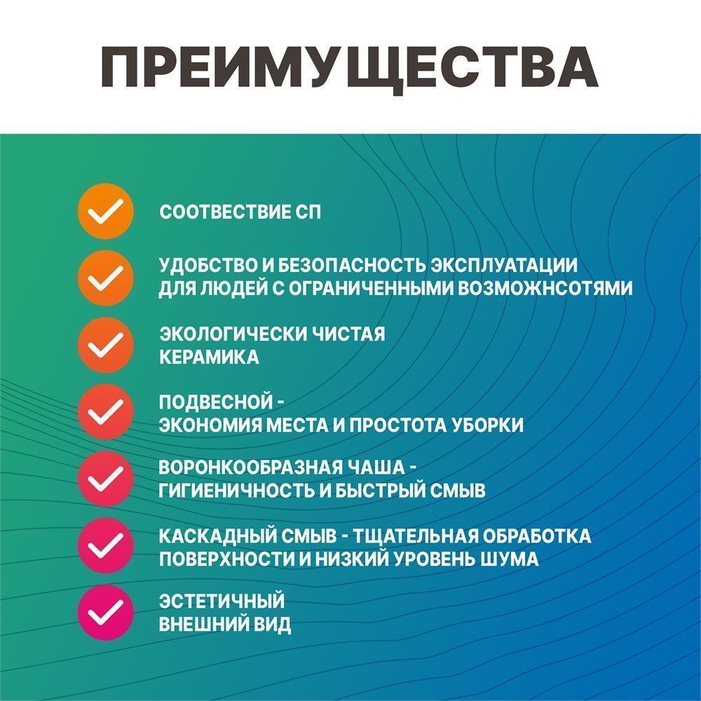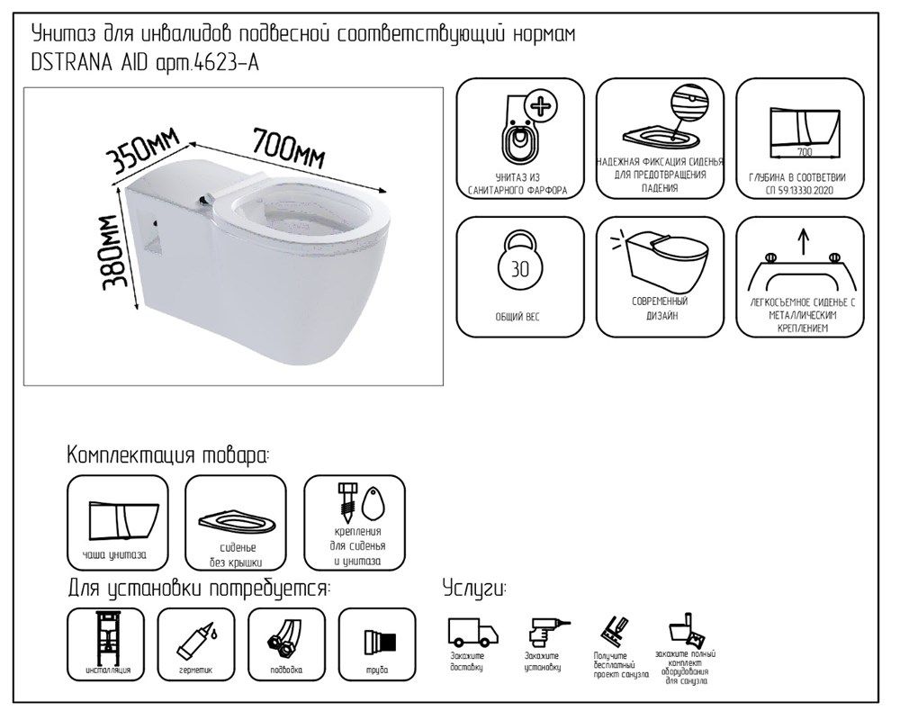 —Унитаз для инвалидов подвесной Dstrana AID 4623-А белый с сиденьем безободковый каскадный смыв