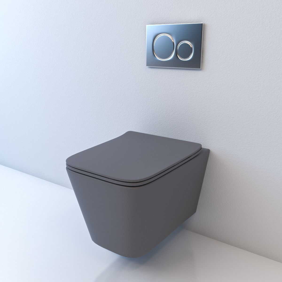 БЕЗОБОДКОВЫЙ подвесной унитаз. Горизонтальный выпуск ("P-Trap" 180 мм). Цвет: серый матовый. Сидение: ультратонкое, быстросъёмное, дюропласт с металлическим крепежом и микролифтом (механизм "Soft Close").