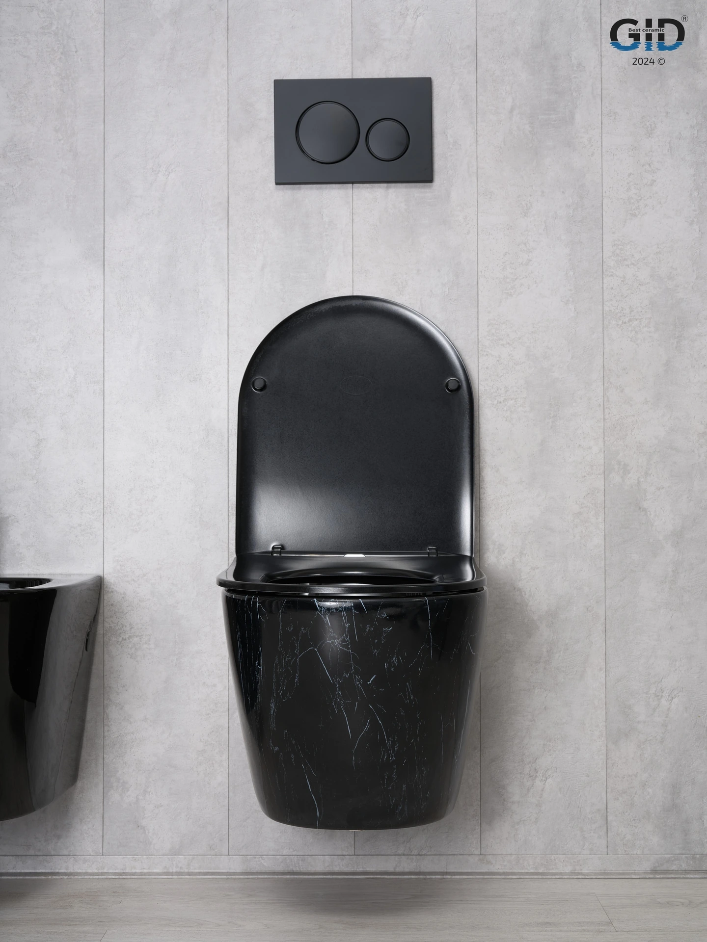 —Унитаз подвесной Gid Convexo 62227Y черный с сиденьем микролифт безободковый смыв торнадо