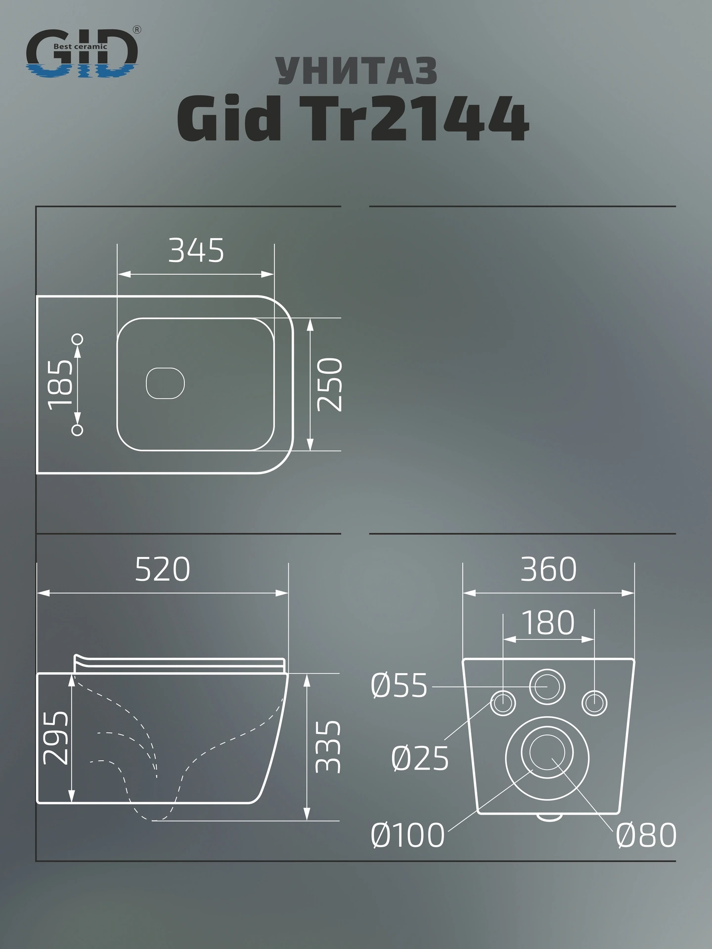 —Унитаз подвесной Gid Cuadrado 61109Y белый с сиденьем микролифт безободковый