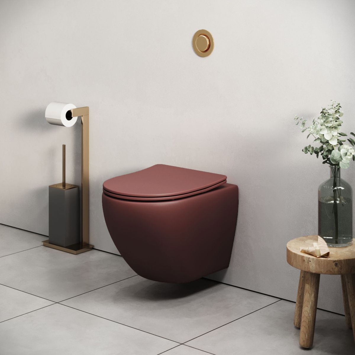 Унитаз подвесной Grossman Color GR-4455VIMS бордовый с сиденьем безободковый каскадный смыв