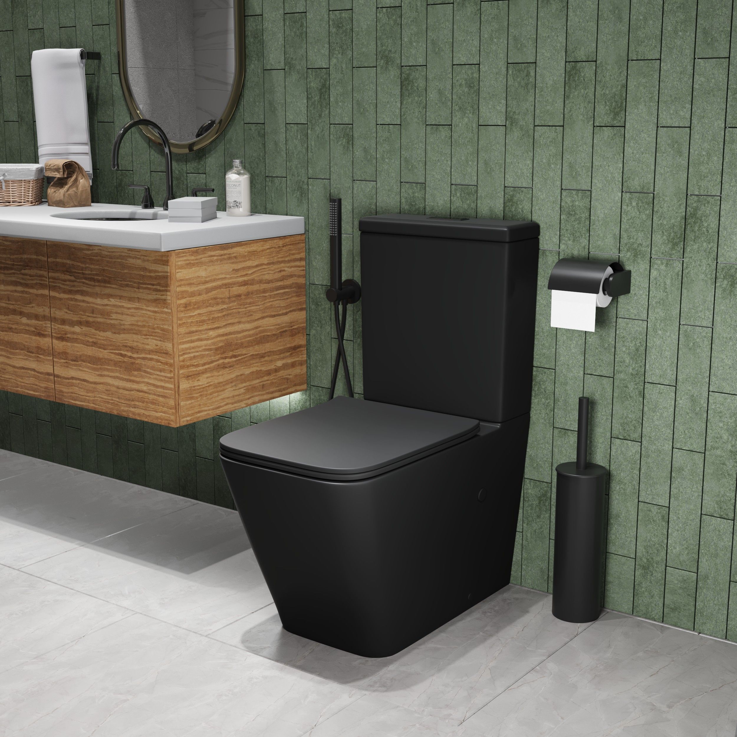 —Унитаз напольный с бачком Grossman GR-4445BMS черный с сиденьем микролифт безободковый каскадный смыв