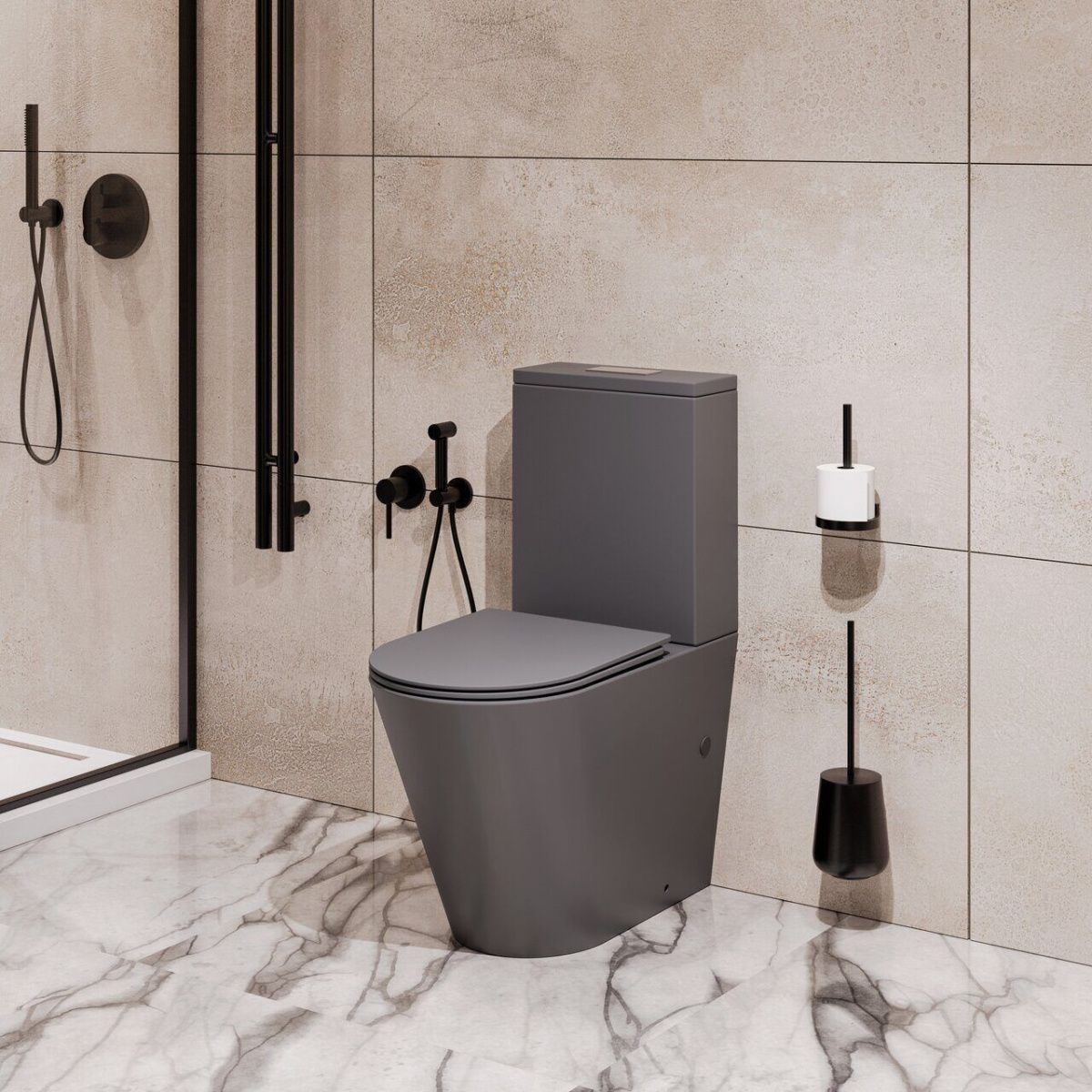 —Унитаз напольный с бачком Grossman GR-4458GMSQ серый с сиденьем микролифт безободковый смыв торнадо