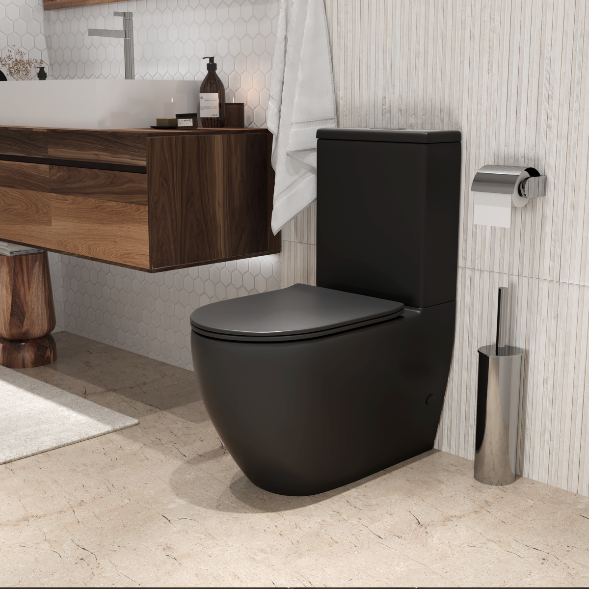 —Унитаз напольный с бачком Grossman Торнадо GR-4446BMSQ черный с сиденьем безободковый смыв торнадо