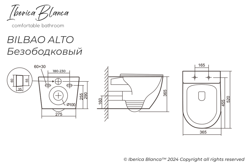 Особенностью серий Толедо Альто и Бильбао Альто является уникальное универсальное межосевое расстояние, которое легко регулируется от 180 до 230 мм в любом положении. Это позволяет унитазам подходить ко всем видам инсталляций, обеспечивая максимальную универсальность и удобство установки.