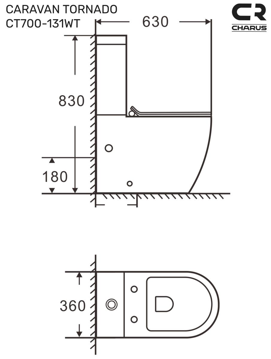 —Унитаз напольный с бачком CHARUS TORRE BIANCA CT700-131WT белый с сиденьем микролифт безободковый смыв торнадо