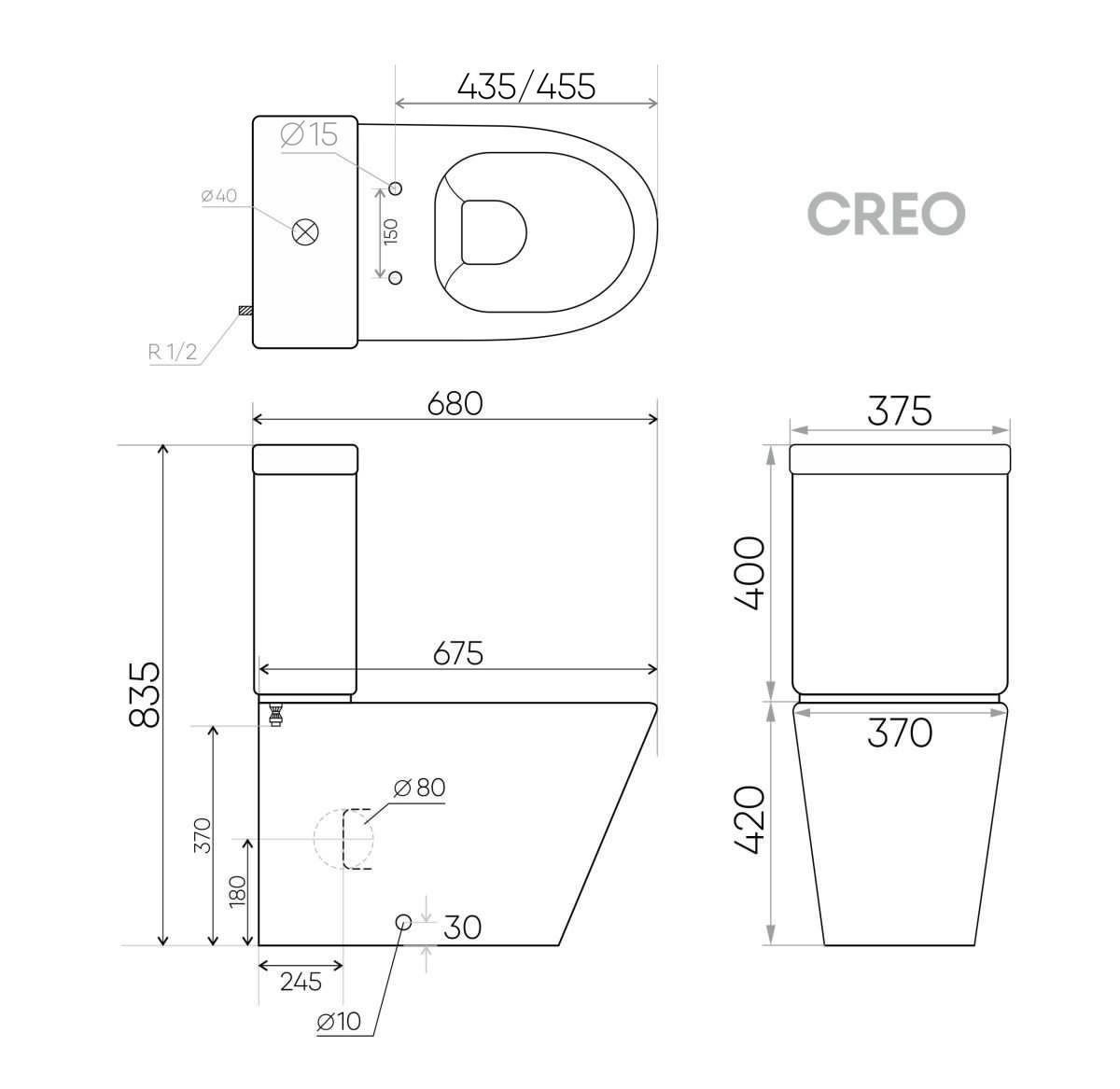 —Унитаз напольный с бачком Creo Сeramique CREO COMBO CR1002R белый безободковый с сиденьем с микролифт каскадный смыв