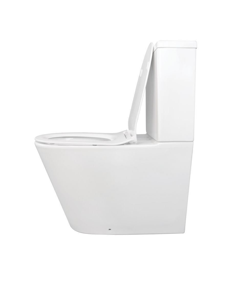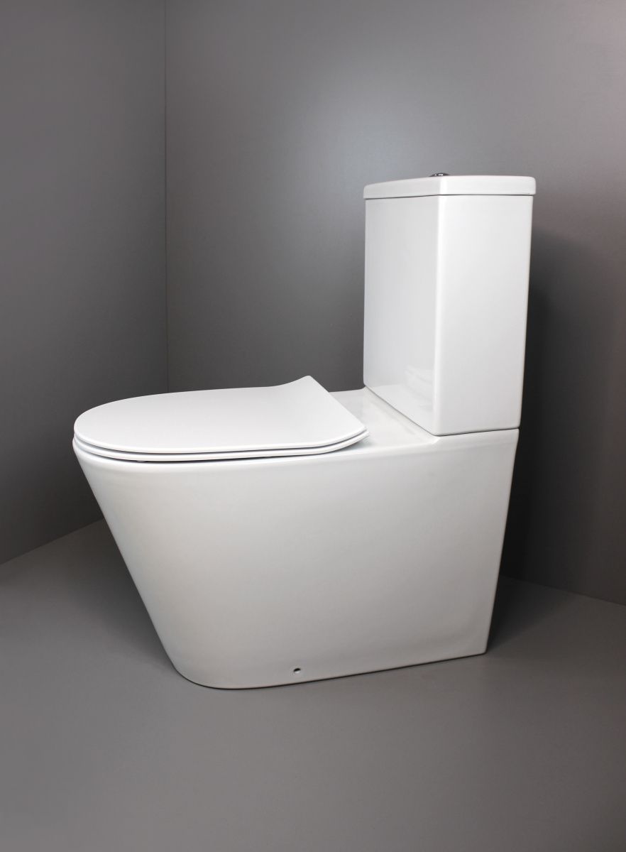 Безободковый керамический унитаз-компакт с  горизонтальным сливом (P-trap,185mm). В комплекте арматура - двойной слив 3\6л                                                                                                                  Наливной механизм с резьбой 1\2", подвод снизу. Дюропластовое быстросъемное тонкое сидение с функцией soft-close. Металлические крепления сливного бачка. Крепление к полу в комплекте. Сантехнический фарфор.
