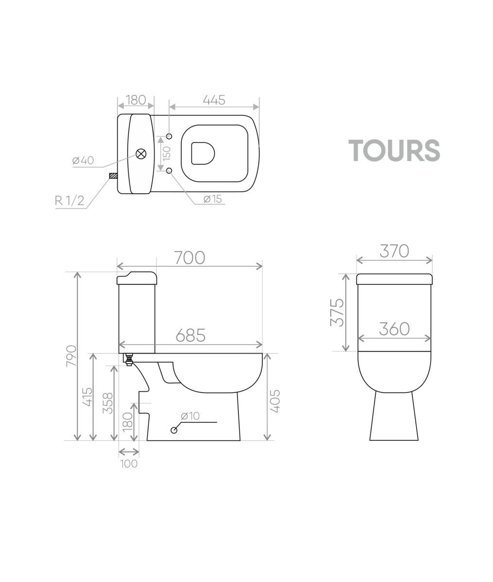 —Унитаз напольный с бачком Creo Сeramique TOURS COMBO-TO1003 белый с сиденьем с микролифт душевой смыв