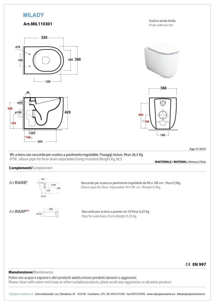 —Чаша унитаза приставная Olympia Milady MIL110307 цвет коричневый без сиденья безободковая