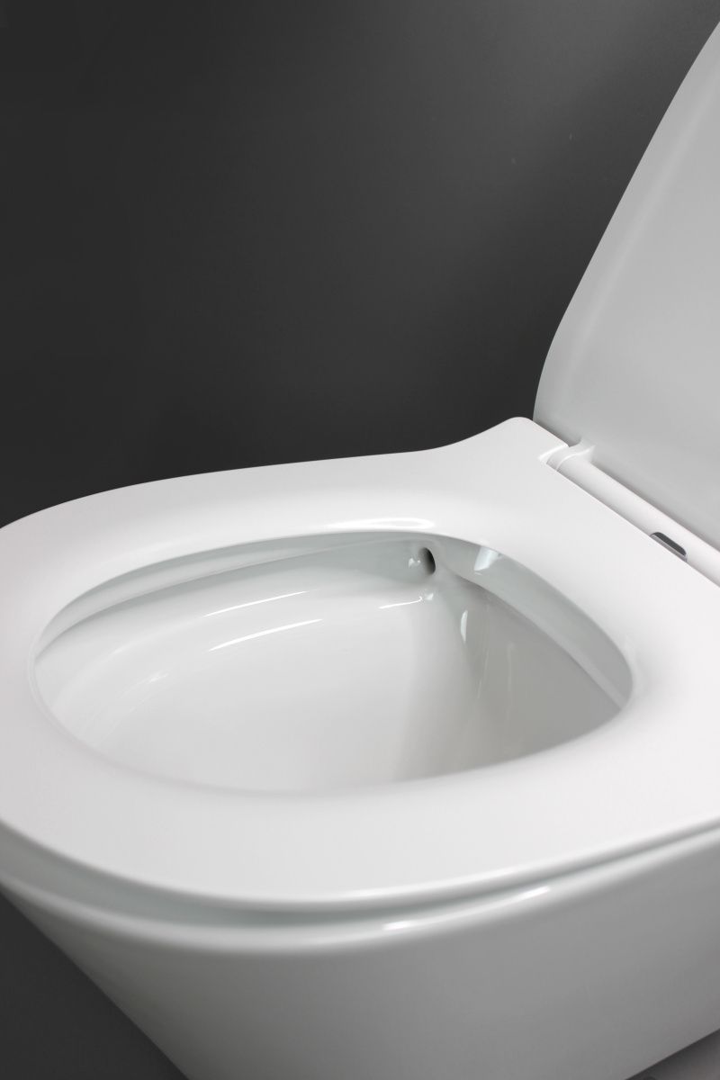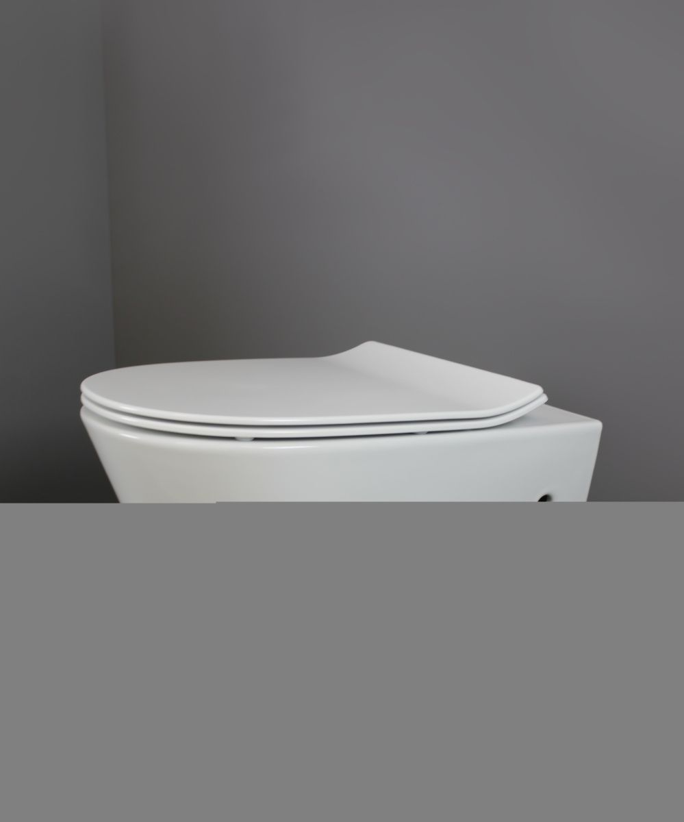 Подвесной керамический унитаз с горизонтальным сливом. Дюропластовое быстросъемное тонкое сидение с функцией soft-close. Крепление в комплекте. Сантехнический фарфор. С-класс.